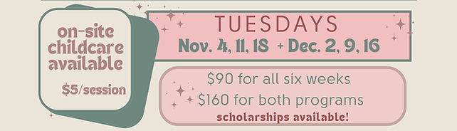 Interested in sponsoring a session or two for one of our scholarship recipients? Currently accepting donations for our groups - each session is $15. Scholarships help us provide support to women who otherwise wouldn't be able to attend due to financial constraints.